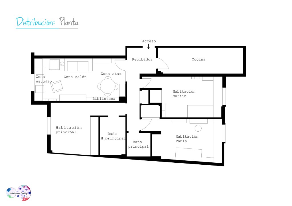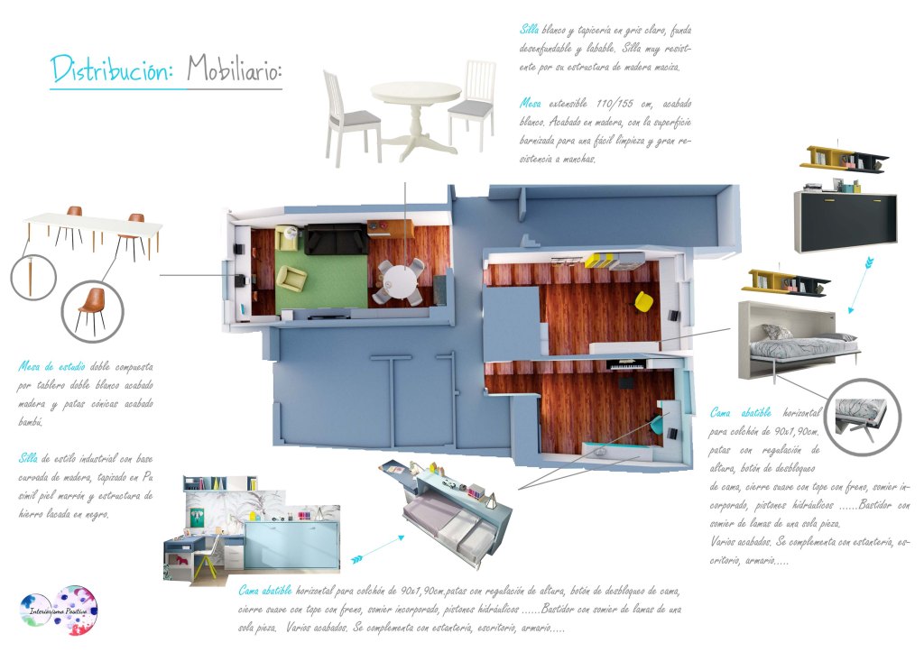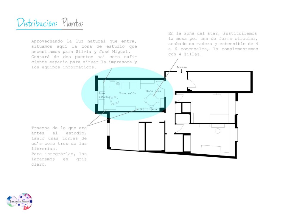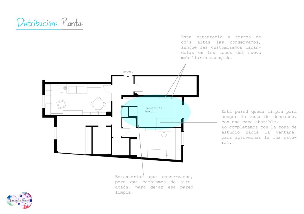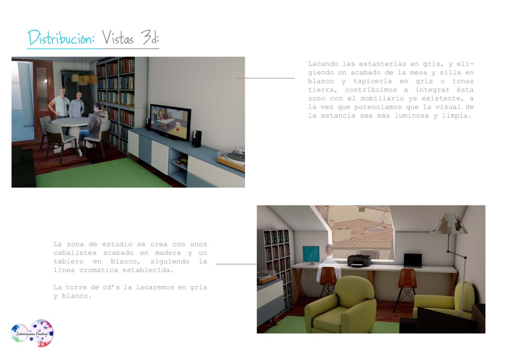 Customizando algunos de los muebles ya existente, añadiendo mobiliario nuevo y creando un espacio amplio, acogedor, luminoso y funcional, éste fue el resultado.