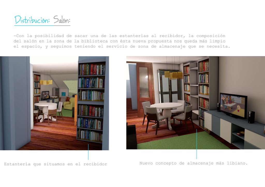 A parte de eso, al crear las dos habitaciones, tenían la necesidad de seguir teniendo una zona de estudio para los papás, la cual se crea en el salón.
